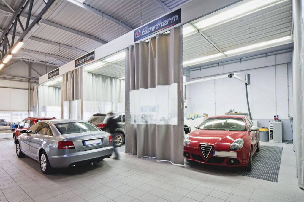 Lakiernia wyposażona jest w profesjonalną strefę przygotowawczą firmy BLOWTHERM oraz 3 niezależne kabiny lakiernicze.